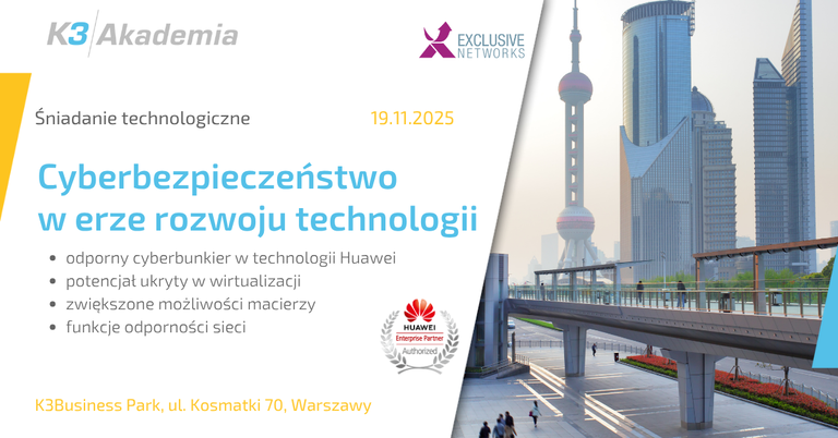 Przyjdź i porozmawiaj z inżynierami Huawei, Exclusive Networks i K3System.